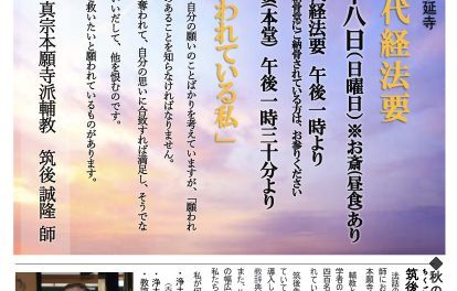 妙延寺は香川県のほぼ中心に位置する綾川町に立つ480年の歴史を持つお寺で、親鸞聖人を宗祖とする浄土真宗本願寺派(西本願寺)の寺院です。